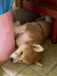 暑くて玄関に寝そべる仏茶。
